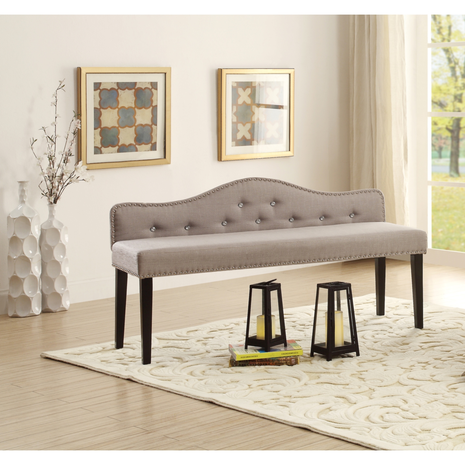 Add a contemporary flair in your living room, entry way, or bedroom when you bring this contemporary accent bench into your home.