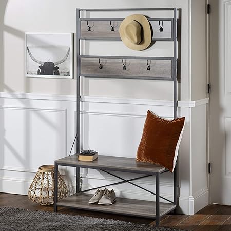 Hall tree storage bench entry stand hat coat rack w/ 3 shelf & 8 hooks organizer. Top three inner panels get mirrored, and three coat hooks are centered in the rail under. Vasagle urbence hall tree, coat rack stand with bench, shoe rack with 2 mesh shelves, hallway, living room, metal, easy assembly, industrial design, rustic brown uhsr37bx. We offer these in three sizes.