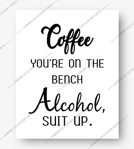 If you're a skinny guy and want to put on some size, then you've got to bench. When you're too lazy to put the text on the meme but still get them ups. Coffee you're on the bench alcohol suit up wood sign, farmhouse decor housewarming gift coffee wine lover sign.