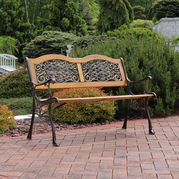 Buy products such as katia outdoor acacia wood bench with rustic metal accents, teak finish at walmart and save.