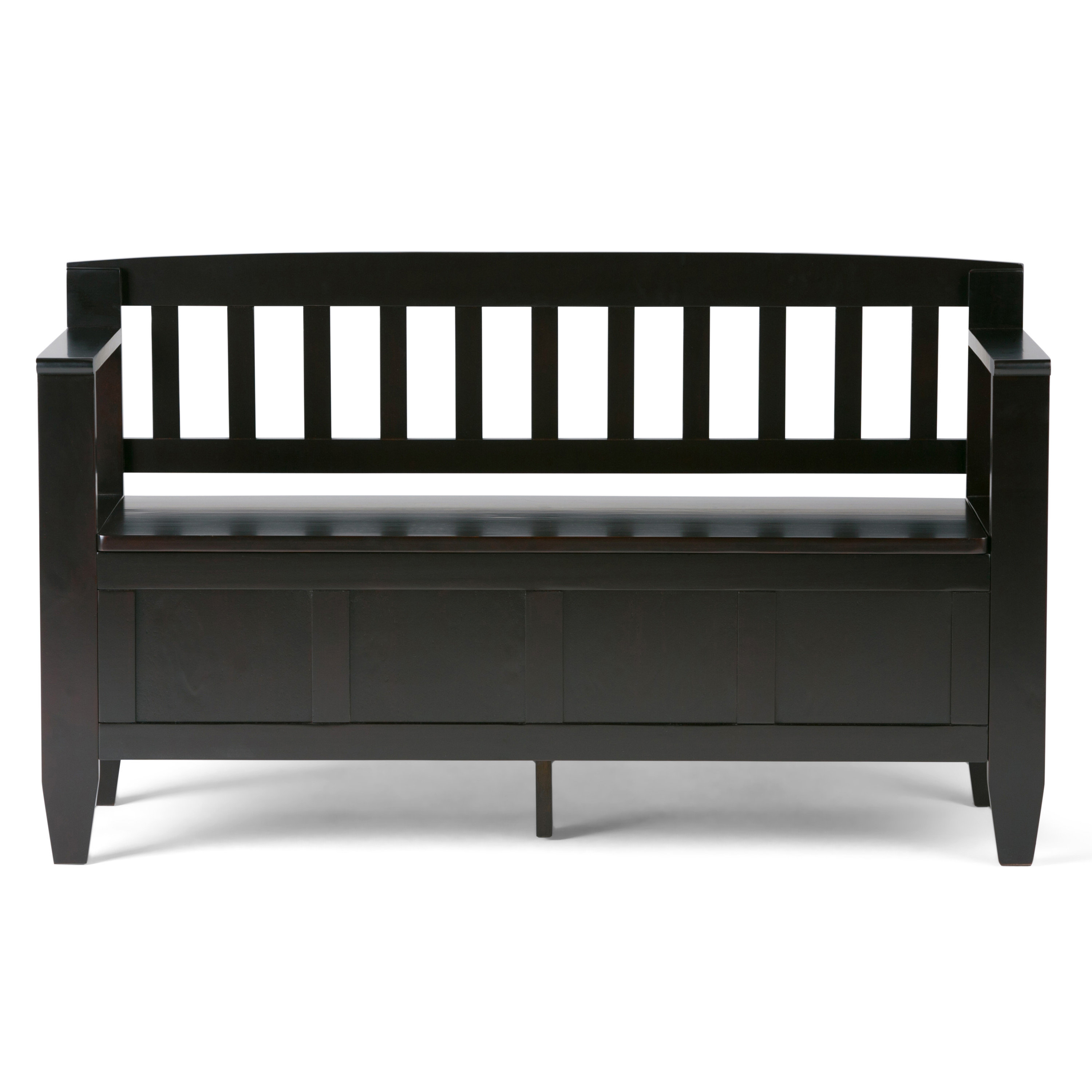 Cynthia solid wood storage entryway bench attractive functional wooden bench with a dark brown finish. Bench storage organizer winsome expresso wood black seat cushion shoe rack entry. This storage bench features high density top seat cushion which brings you the perfect comfort and support. Two large doors open to reveal a large storage space.