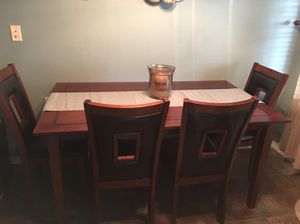 My sanctuary 6 piece dining set with full back storage bench has two removable 18 table leaves that extend the 76 table to 94 and then to 112.… You can read real customer reviews for this or any other dining sets and even ask questions and get answers from us or straight from the brand. Featuring a rich cherry finish with tapered legs and padded seating, each piece brings decorative design to your kitchen or dining room.