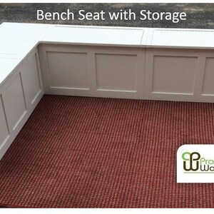 To get the exact measurement of the length, measure from the corner to where the final edge of the bench will one side stores a stand mixer, sheet pans, cutting boards and more, while the other side allows for extra seating.